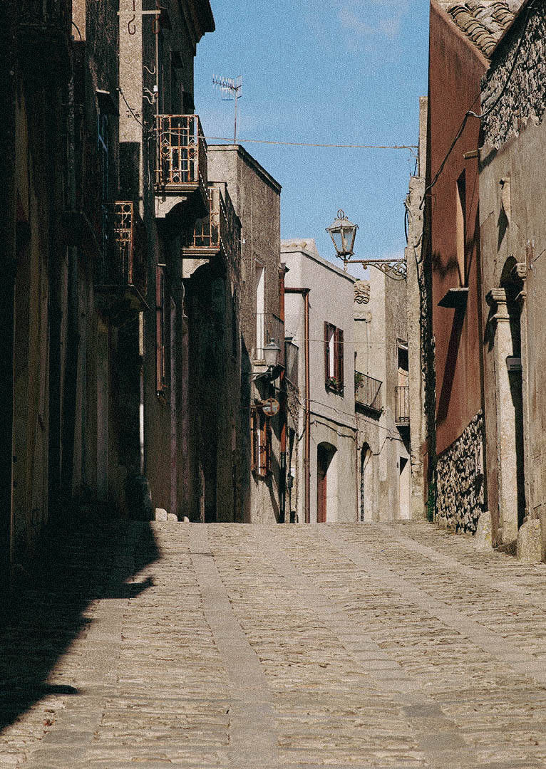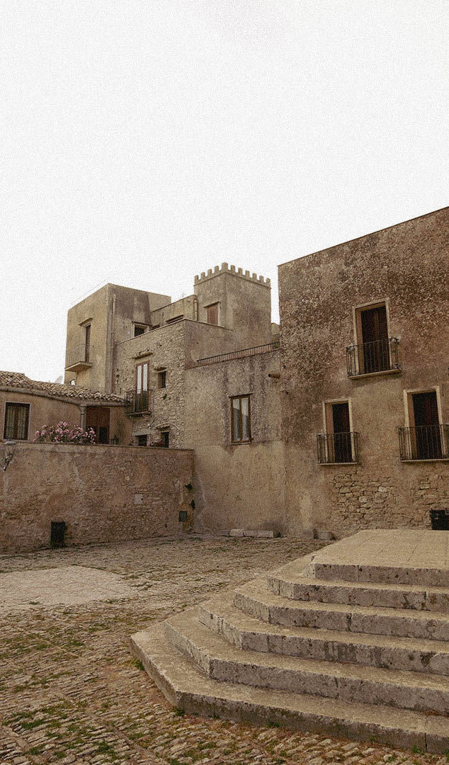 Svettando dall’alto dei suoi 750 metri, Erice è un cofanetto di pietre preziose che fa innamorare i suoi visitatori. Pietre rimaste intatte, levigate e non, che tappezzano muri e strade in modo uniforme e perfettamente compatibile con il contesto nel quale il borgo è sorto.